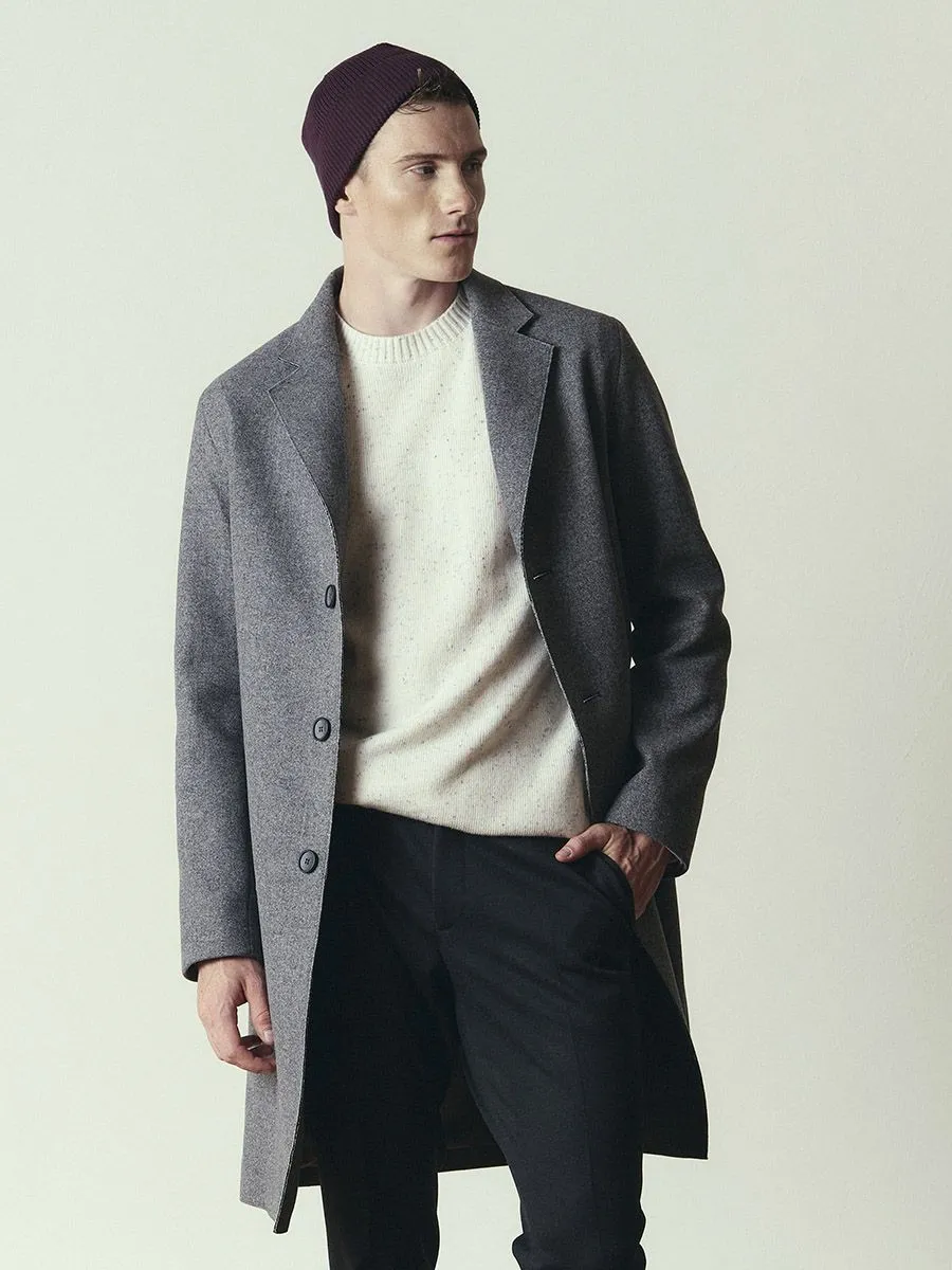 Это изысканное легкое пальто в элегантном сером меланже – идеальное решение для межсезонья и теплых зимних дней. Сочетая в себе непринужденную элегантность и практичность, оно станет незаменимым элементом гардероба современного мужчины. Пальто не стесняет движений, обеспечивая комфорт в течение дня, и легко сочетается с различной одеждой, от делового костюма до повседневных джинсов. Ткань высокого качества, из которой выполнено пальто, обладает превосходной воздухопроницаемостью и приятна на ощупь.
