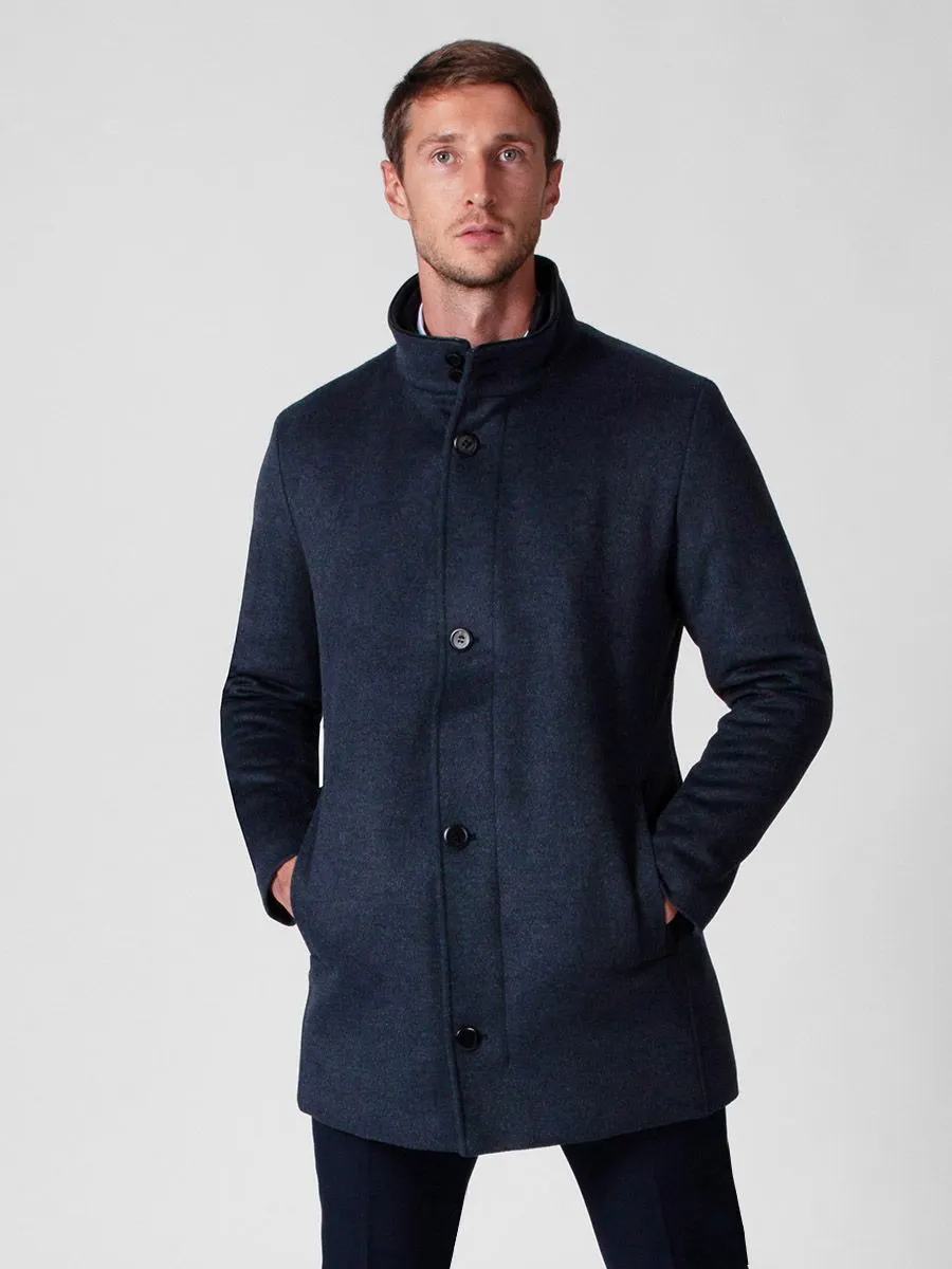 Эту вещь можно удачно сочетать как с классической деловой, так и с повседневной и даже спортивной одеждой. Прямой силуэт пальто в стиле Casual исполнен в тёмно-сером цвете. Демисезонная модель имеет утеплитель на линии борта, переходящий вверх до уровня шеи. Кожа добавляет в этот образ свою изюминку: она присутствует на воротнике в виде кантика и на застегивающихся наружных карманах. Стеганый подклад состоит из 100% полиэстера. А основной состав изделия – это 55% шерсти, 15% нейлона и 30% полиэстера.