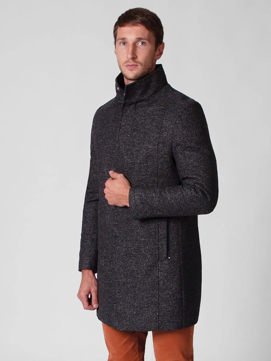 Приталенное мужское пальто Peplos подойдет молодым людям и стройным мужчинам среднего возраста. Современная пальтовая ткань темно-серого цвета с бежевыми вкраплениями делает образ современным и молодежным. Пальто застёгивается на молнию и кнопки для дополнительного удобства. Стойка внутри с хлопковым черным трикотажем защитит от ветра и непогоды. Подкладка внутри стеганая черного цвета из 100% полиэстера. Состав верха 89% полиэстера и 11% вискозы.