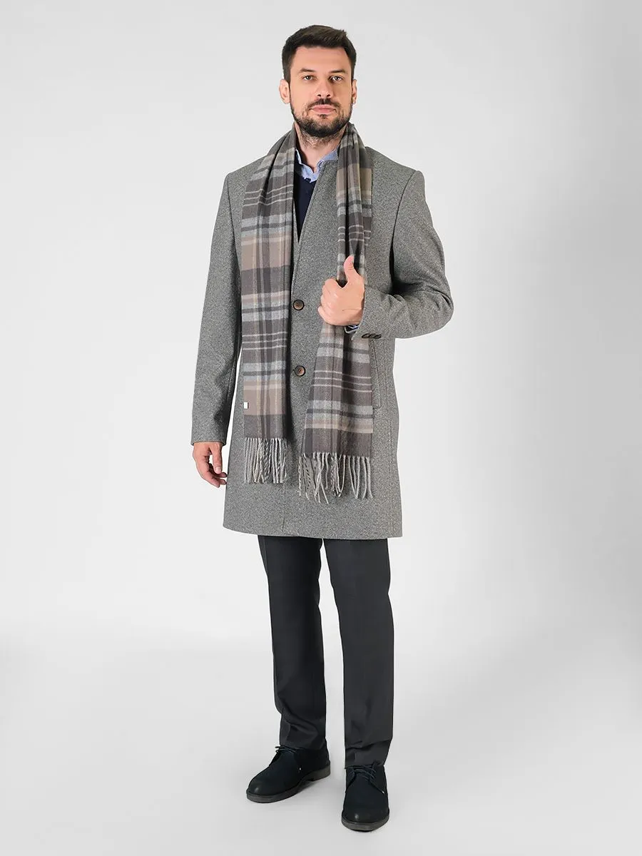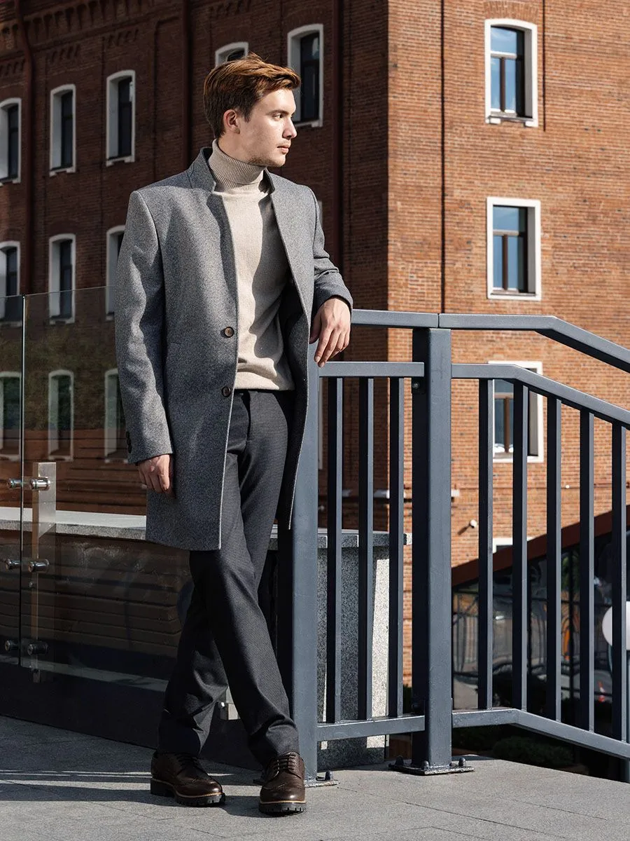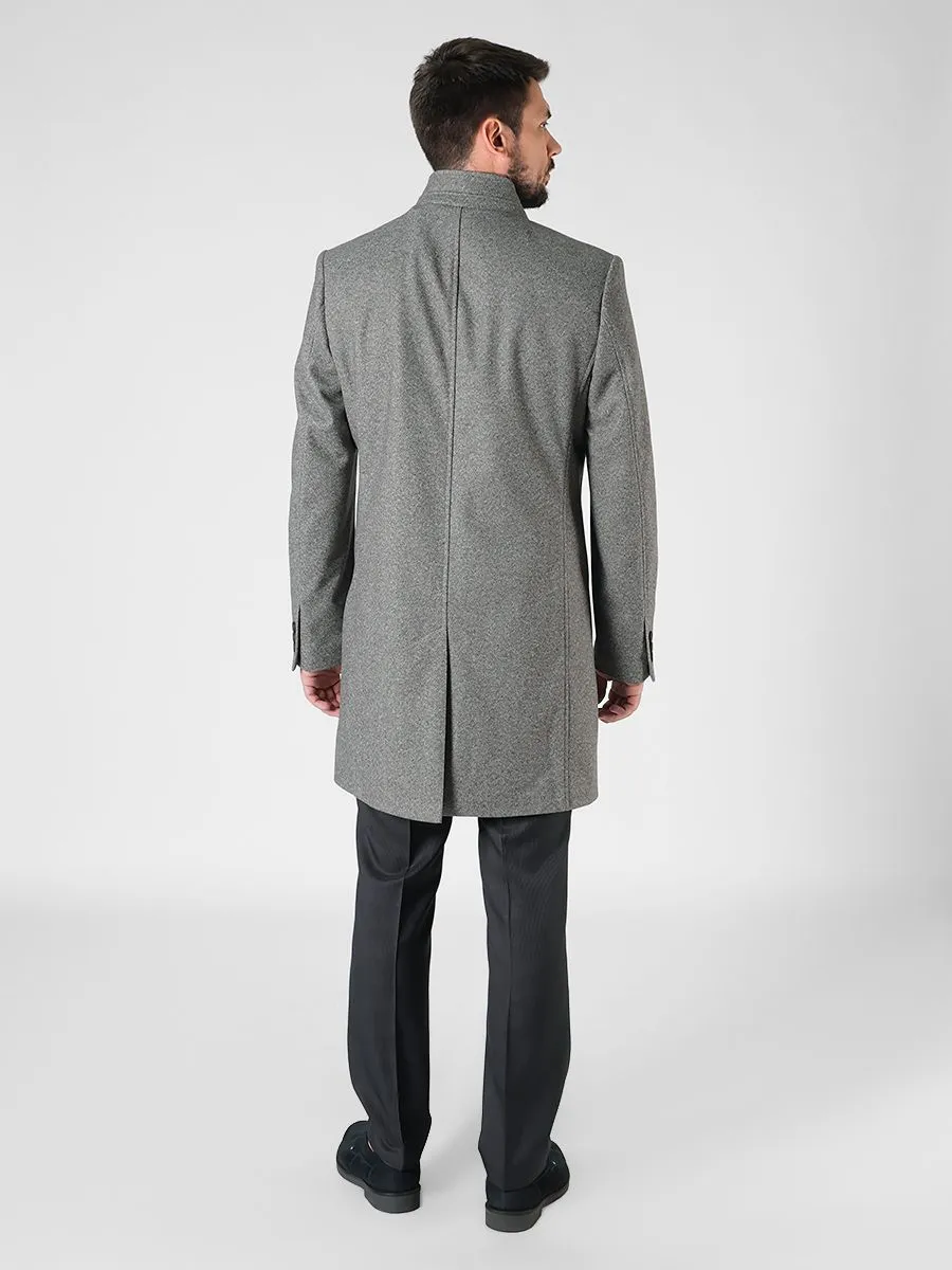 Элегантное серое пальто притягивает своей простотой и лаконичностью. Полуприлегающий силуэт, меланжевый серый цвет, шалевой воротник и минимум деталей в виде пуговиц делают пальто таким привлекательным. Также у пальто есть два боковых кармана, и два внутренних. В холодную погоду пальто можно дополнить шарфом, который будет согревать и украшать.