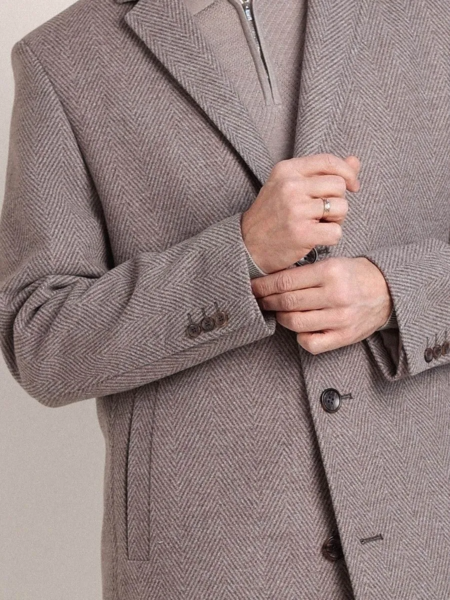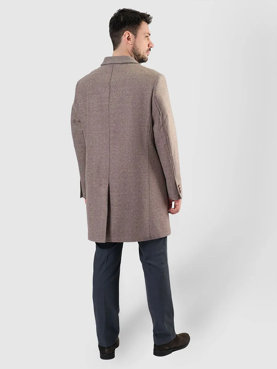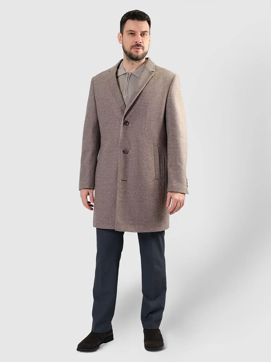 Бежевое мужское пальто с рисунком "елочка" – это беспроигрышный вариант для создания элегантного и одновременно непринужденного образа. Он прекрасно сочетается с широкой палитрой цветов, от глубоких оттенков синего и бордового до светлых тонов серого и белого. Узор "елочка", в свою очередь, добавляет текстуры и глубины, делая пальто более интересным и визуально привлекательным. Это классический мотив, который никогда не выходит из моды и придает образу респектабельности.Оверсайз фасон пальто подчеркивает современный взгляд на мужской стиль. Свободный крой не только обеспечивает комфорт, но и позволяет экспериментировать с многослойностью в одежде. Под такое пальто легко надеть толстый свитер или пиджак, не ощущая при этом скованности. Это идеальный вариант для тех, кто ценит свободу движений и практичность в повседневной жизни.