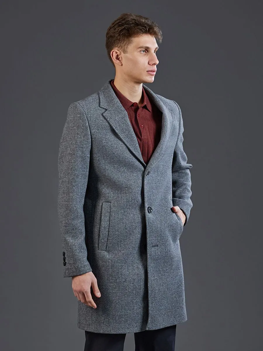 Полуприлегающее пальто, выполненное из смесовой ткани серого меланжевого оттенка. Модель отличается сдержанной цветовой гаммой, где переплетение нитей разного тона создает сложный, глубокий и визуально интересный серый цвет без однородного плоского окраса. Данное пальто образец классического дизайна, где внимание уделено каждому элементу: от выбора меланжевой ткани и полуприлегающего силуэта до конструктивных деталей в виде воротника с лацканами, застежки на пуговицы и боковых карманов с «листочкой». Это инвестиция в базовый элемент гардероба, который благодаря своему крою, цвету и качеству исполнения будет сохранять актуальность в течение многих сезонов. Модель демонстрирует сдержанную элегантность, практичность и высокий уровень комфорта