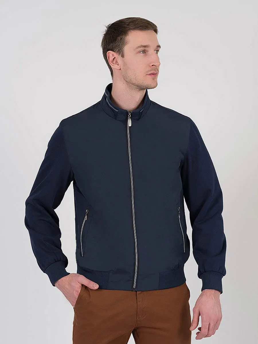 Ветровка Peplos выполнена в классическом синем цвете, ассоциирующимся с вечностью и надежностью, элегантностью в своей простоте. Главной особенностью ветровки являются трикотажные рукава из 100% хлопка. Также трикотажной резинкой отделаны стойка воротника с внутренней и внешней стороны, низ ветровки и рукава. У ветровки предусмотрены два кармана с молниями по переду и два кармана с молниями внутри для документов. Такая легкая и удобная ветровка станет отличным решением для теплых весенних и прохладных летних дней.