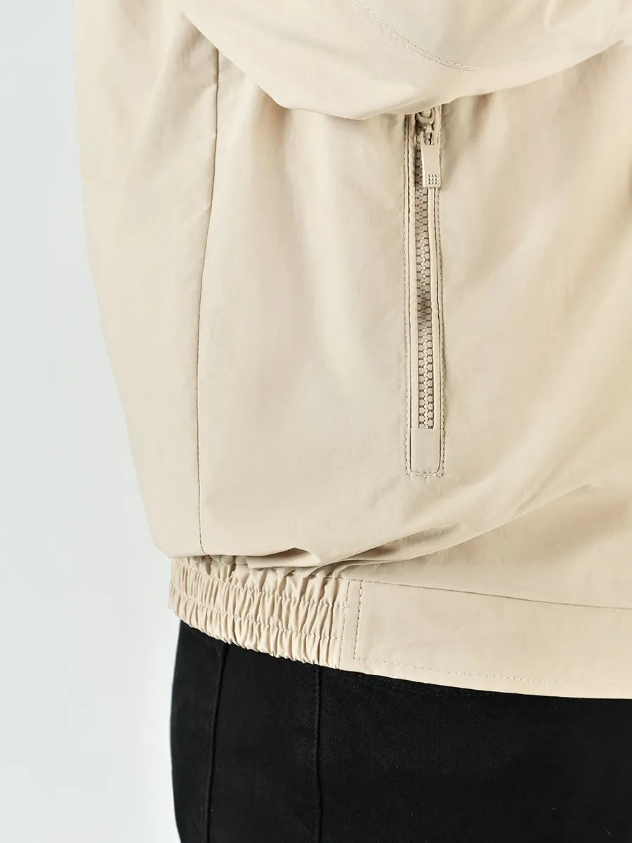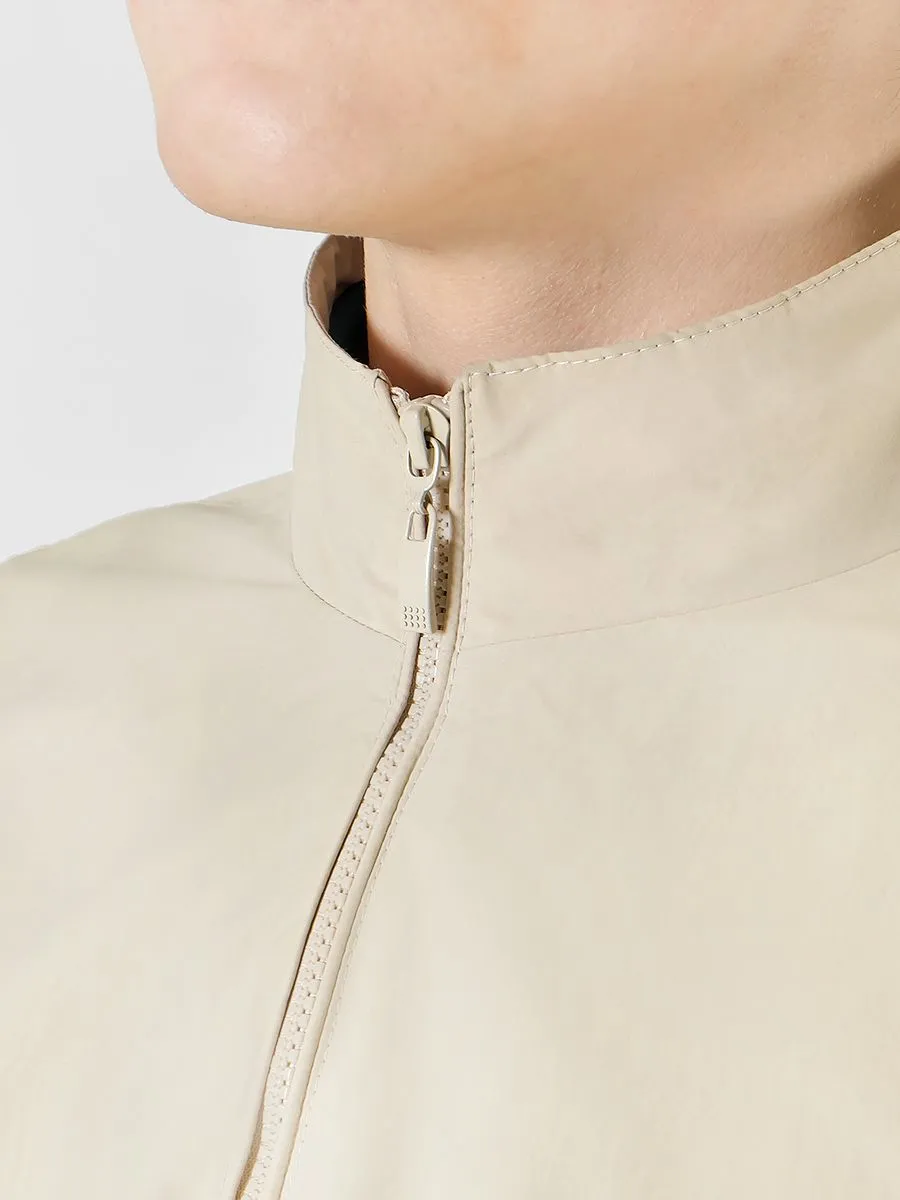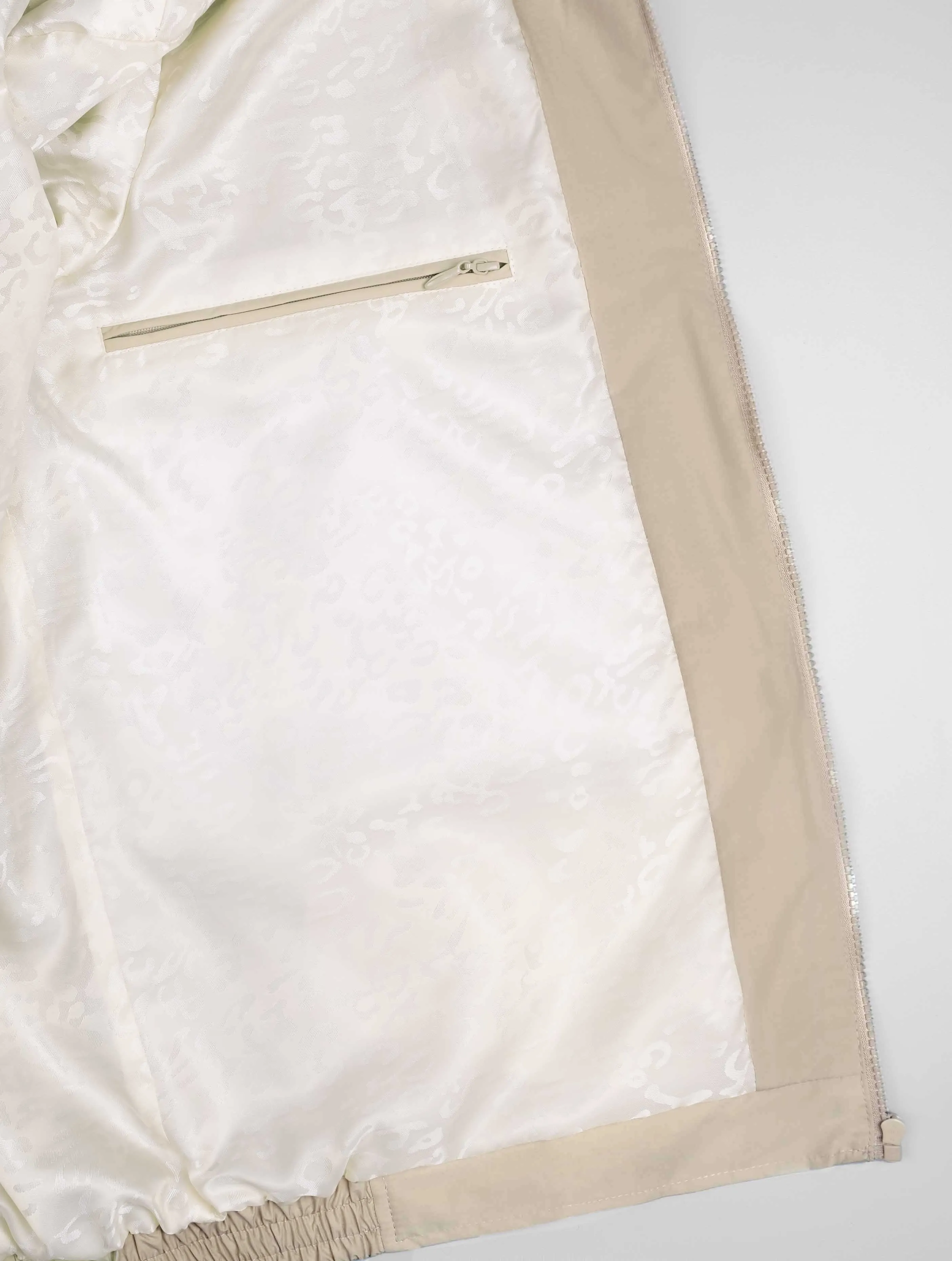 Бежевая ветровка из новой коллекции "Весна-лето" будет актуальным элементом гардероба в теплые, но ветреные дни. Верхняя ткань содержит в составе хлопок, а подклад вискозу, поэтому у ветровки хорошая влагоотдача. Для лучшей защиты от ветра по низу ветровки частично прошита резинка для более плотного прилегания, манжеты рукавов регулируются кнопками и воротник выполнен в виде стойки. Также у ветровки два удобных боковых кармана на молнии и два внутренних.