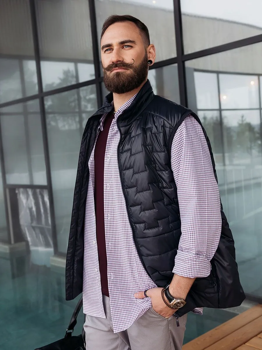 Долгие годы утепленные жилеты считались исключительно спортивной одеждой. Однако несколько лет назад во многих коллекциях модных дизайнеров появились городские модели, которые с каждым годом становятся все более популярными. Носить их можно по-разному. Например, надевать поверх джемпера, а в дождливую погоду —под тонкий плащ. Или создать сложный образ с футболкой и рубашкой. Особенностью данной модели является синяя ткань с водоотталкивающей пропиткой. Сочетание геометрической и горизонтальной стежки на полочке и спинке. Пластиковые молнии типа "трактор", которые являются наиболее прочным вариантом среди аналогичных. Два внутренних и два внешних кармана.