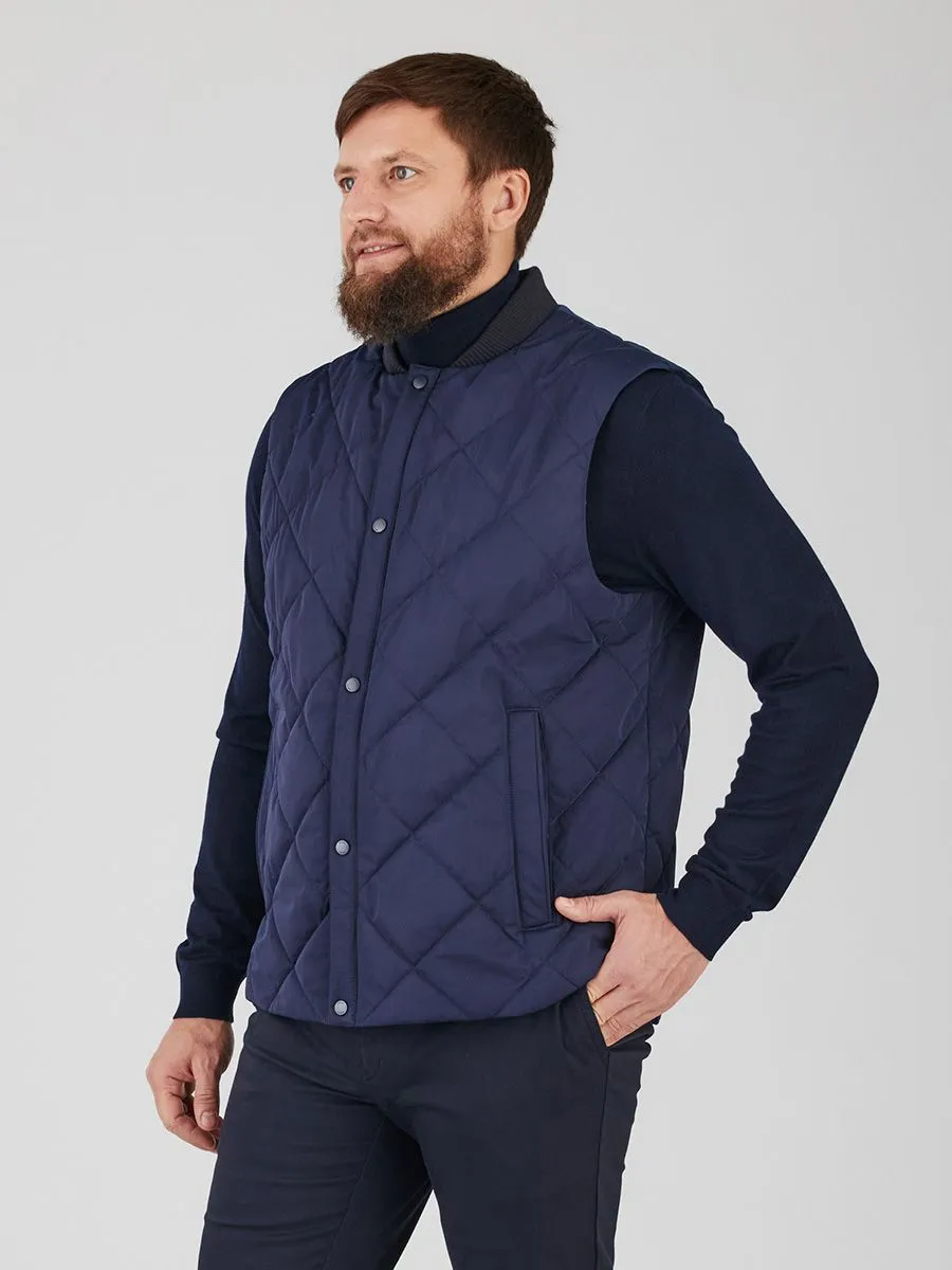 Мужской утепленный жилет – это стильное и практичное решение для прохладной погоды. Стеганая фактура придает изделию современный вид, а кнопочная застежка обеспечивает легкость и удобство в использовании. Идеальный выбор для тех, кто ценит комфорт и мобильность в движении.