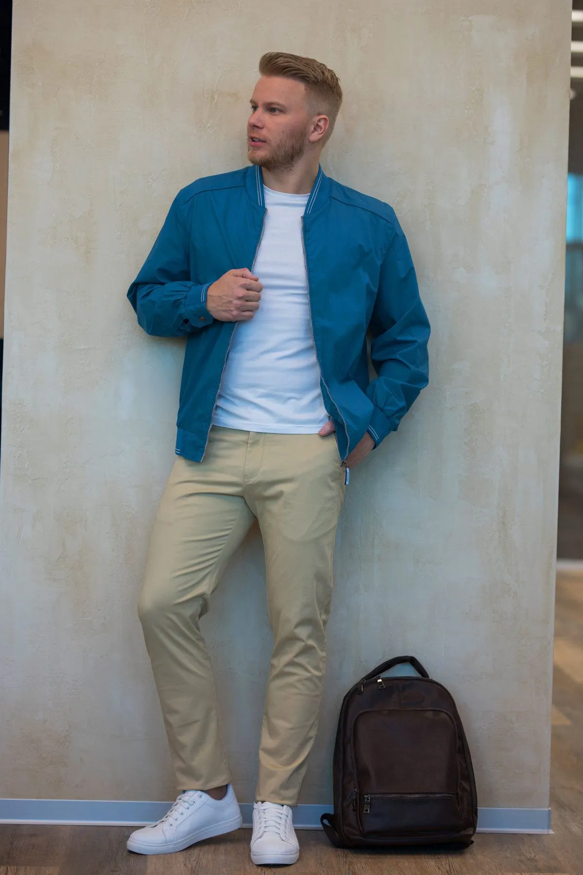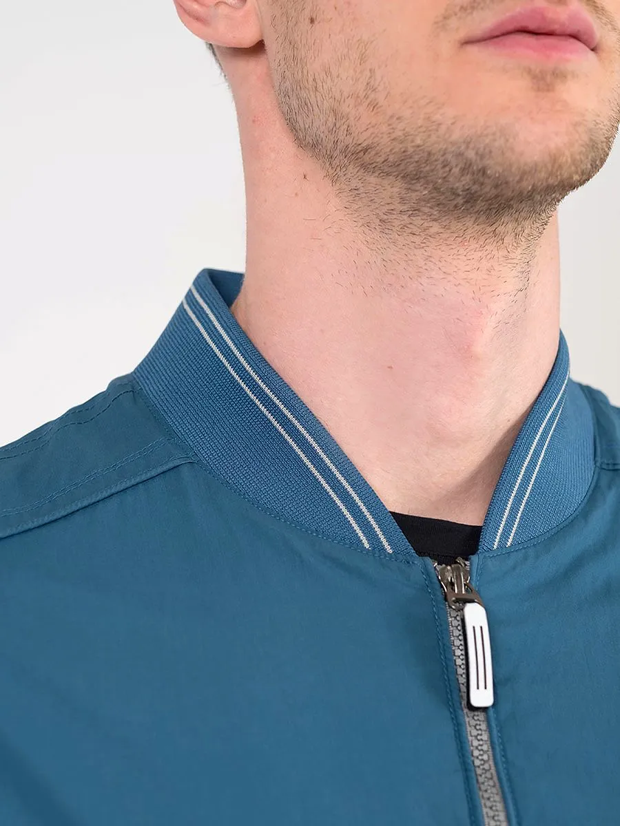 Ветровка морского голубого цвета станет ярким акцентом в любом образе- с джинсами или хлопковыми брюками casual. Полустойка из трикотажа с микродизайном в виде полос светлого цвета и комбинированные манжеты из трикотажа, регулирующиеся кнопкой, сделают ношение этой ветровки удобным и комфортным, чему способствует и 100% хлопковый состав верха. Такой оттенок бирюзового занимает лидирующие позиции в списке цветов летней одежды 2020 года.