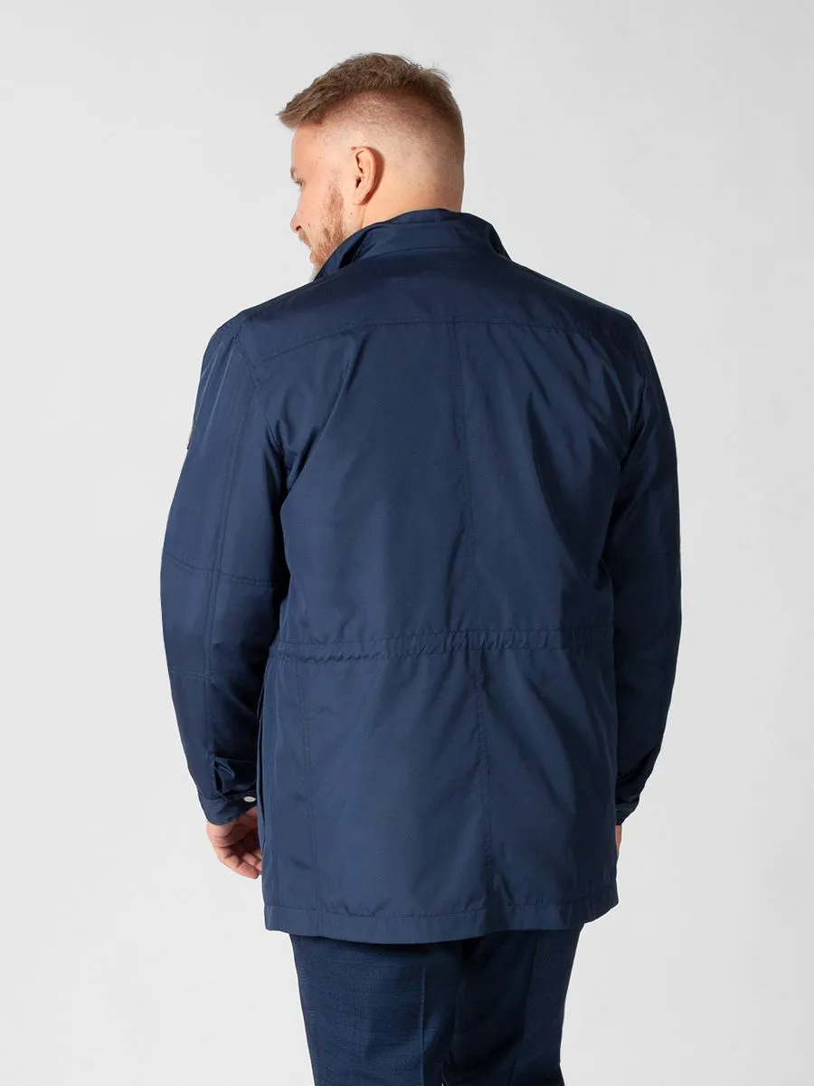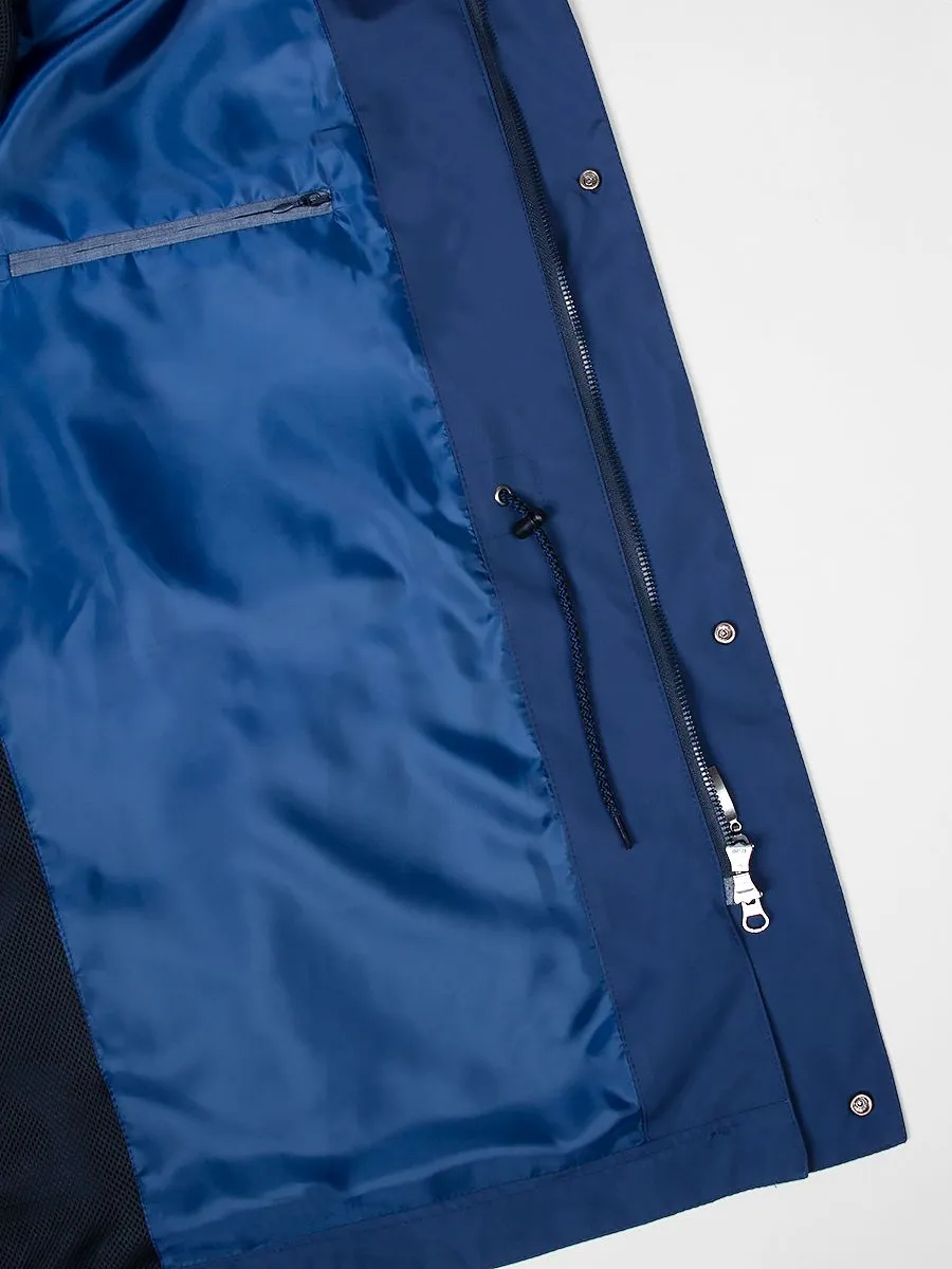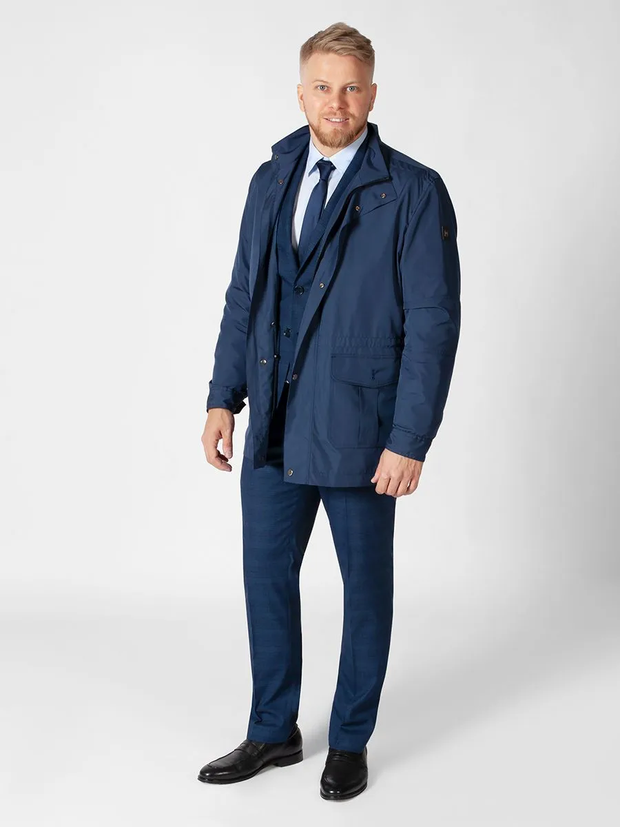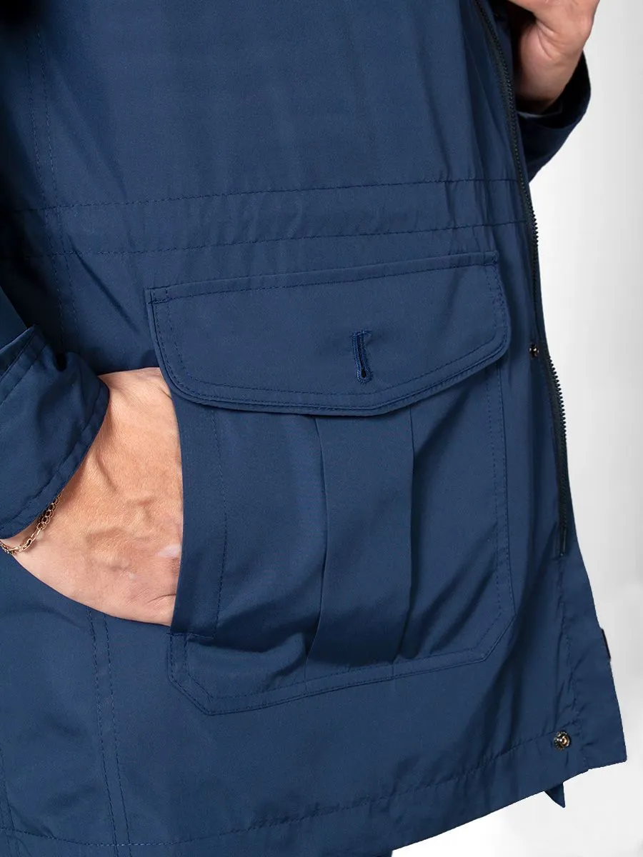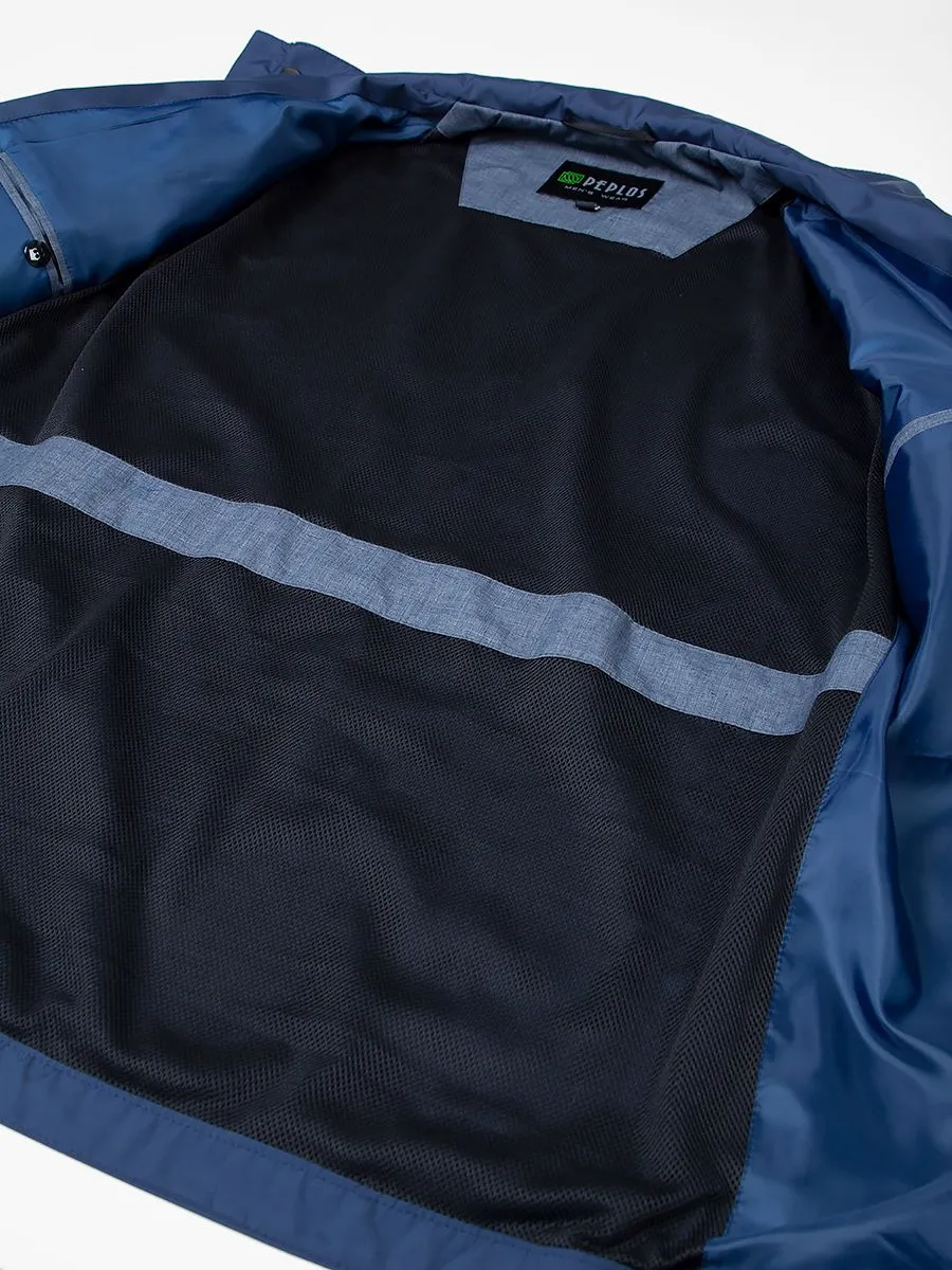 Ветровка OW2114-SJ из легкой ткани приглушенного синего цвета является миксом классического и кэжуального стилей. Сдержанный крой, стойка, длина, позволяющая надевать вещь на пиджак – классические детали, благодаря которым ветровка отлично смотрится с сорочкой, галстуком, строгими брюками. Накладные карманы со складкой и клапаном, планка, кнопки – детали кэжуал, позволяющие одеть ветровку с более расслабленными вещами, такими как брюки чинос, футболки-поло и джемпера.Подклад комбинированный: спинка из сетчатой ткани, отделочные детали из меланжевой серой ткани, перед из синей подкладочной ткани.