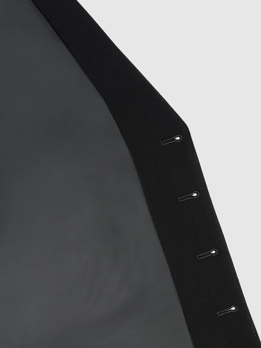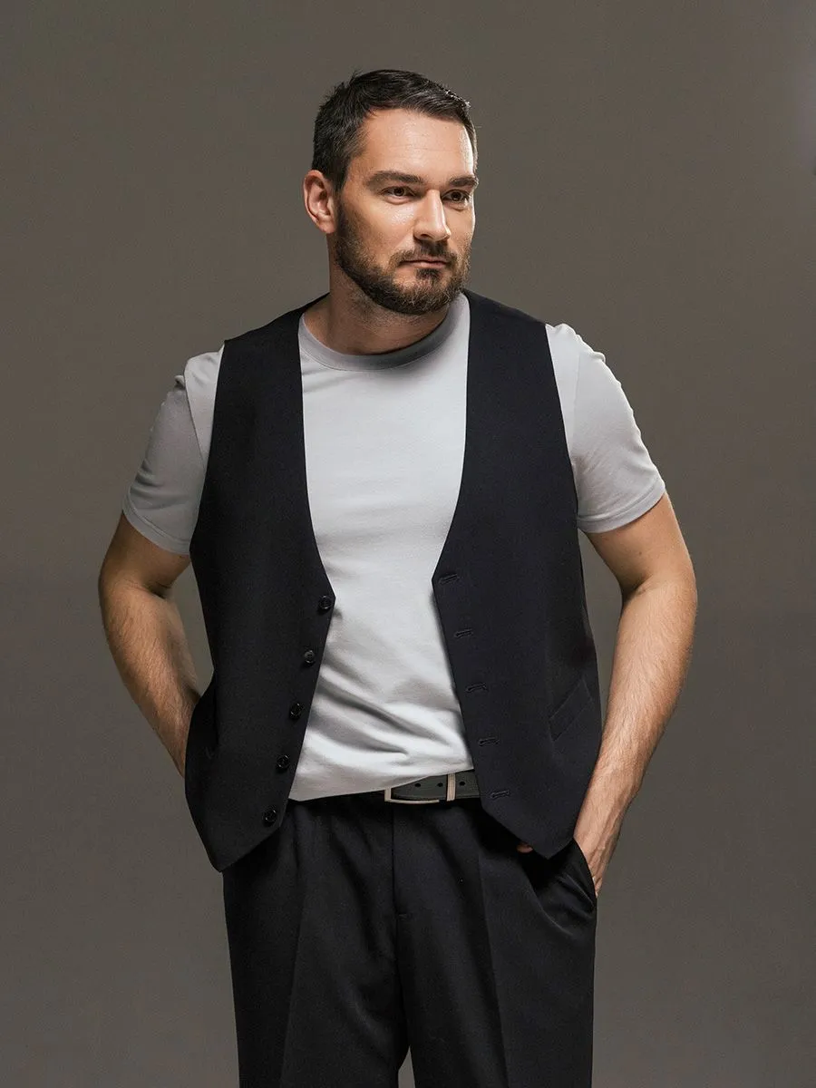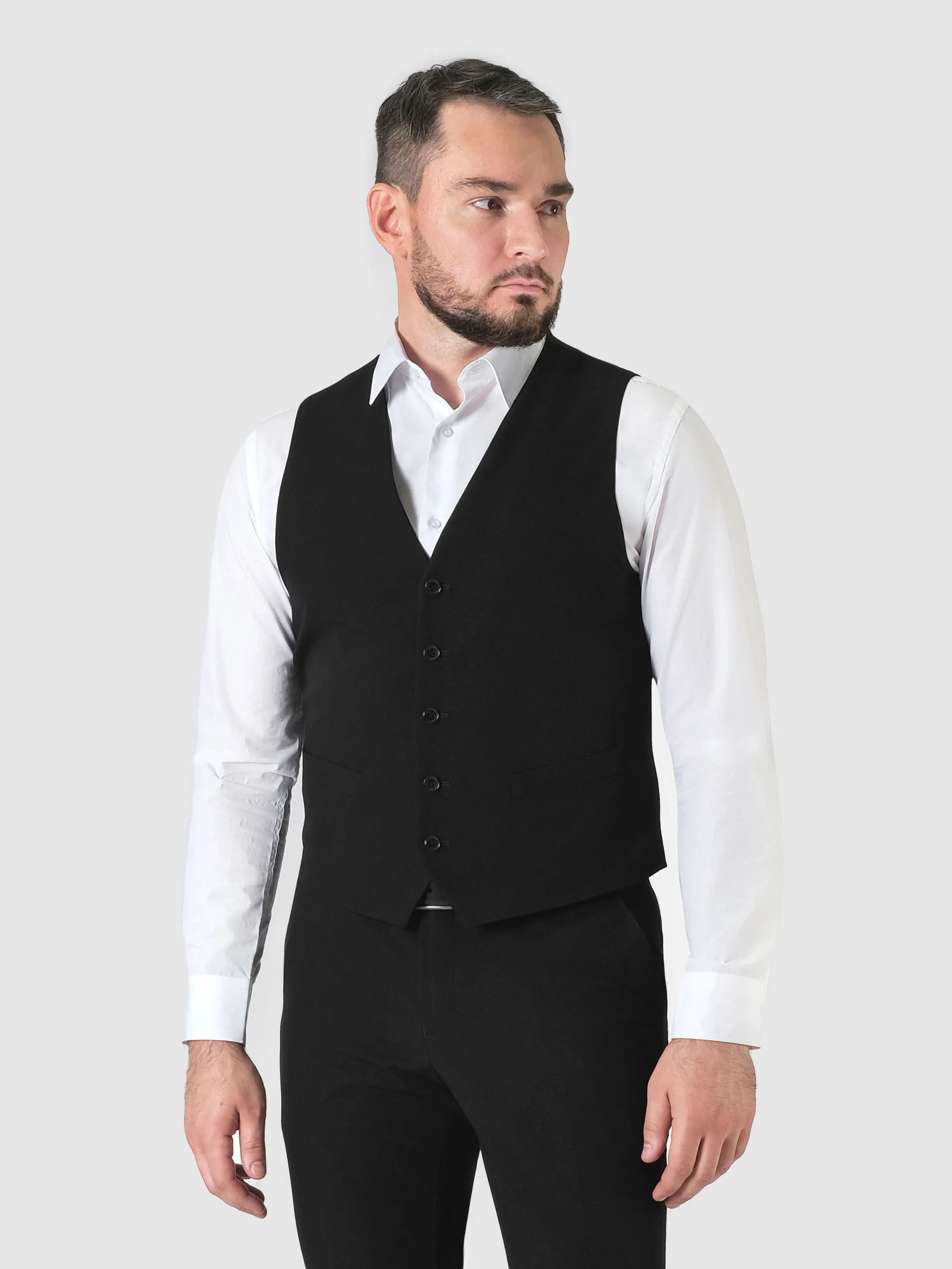 Черный жилет Peplos выполнен в полуприлигающем силуэте, спинка жилета изготовлена из основной ткани, внутри есть подклад из 100% полиэстера. У жилета имеется хлястик для регулировки объема по талии, спереди изделие застегивается на пуговицы. Материал имеет в составе спандекс 4% , что дает комфорт в движении и носке. Жилет может стать отличным дополнением к брюкам TR24099-282.