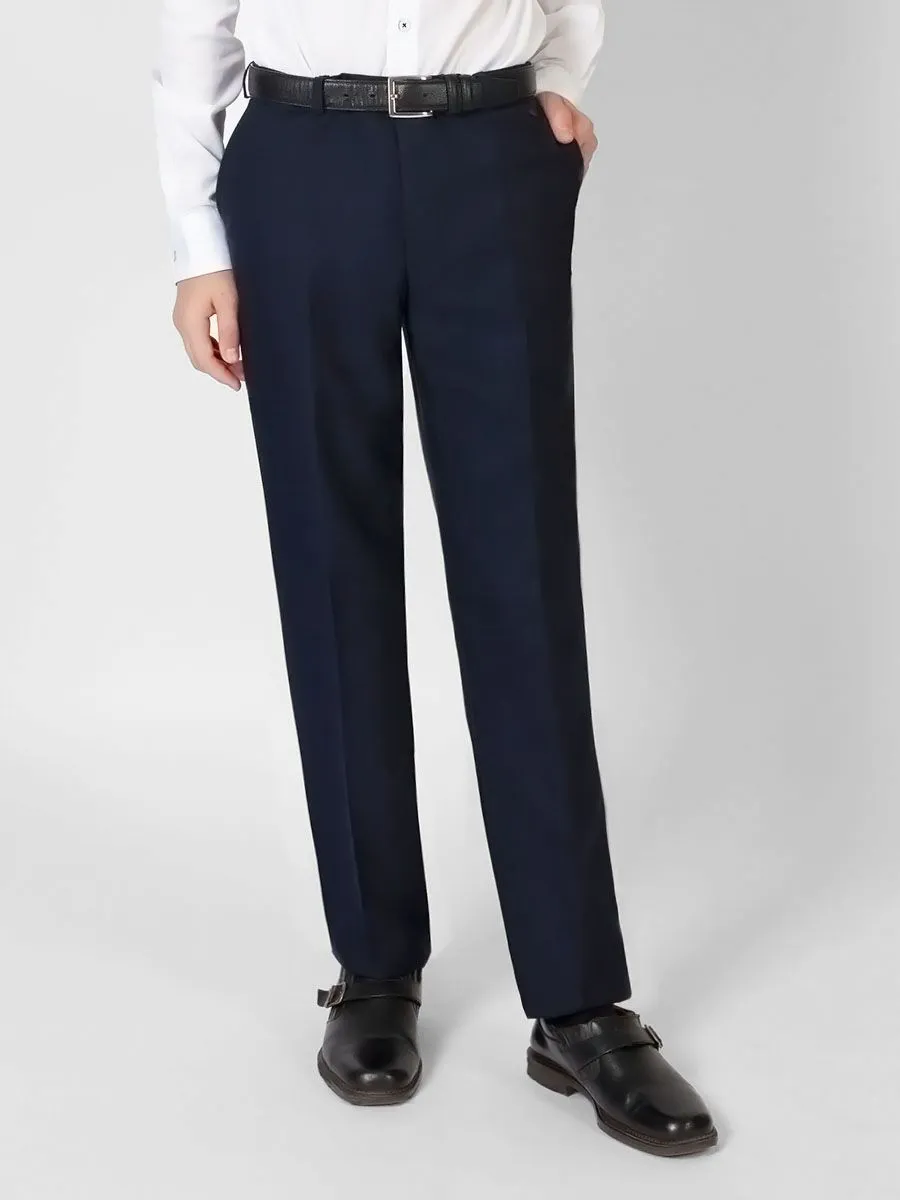 Темно-синие однотонные классические брюки Peplos для мальчика выполнены в узком крое для того, чтоб ребенок смог подчеркнуть стройность своих ног и контуры фигуры. Многочисленные праздники и концерты сопровождаются нарядной одеждой и торжественными образами. Собрав комплект из классической сорочки и данных брюк, ребенку можно смело отправляться на любые мероприятия. В состав верха входит 45% шерсти и 55% полиэстера, а подклад состоит из 48% плотной вискозы и 52% прочного полиэстера.