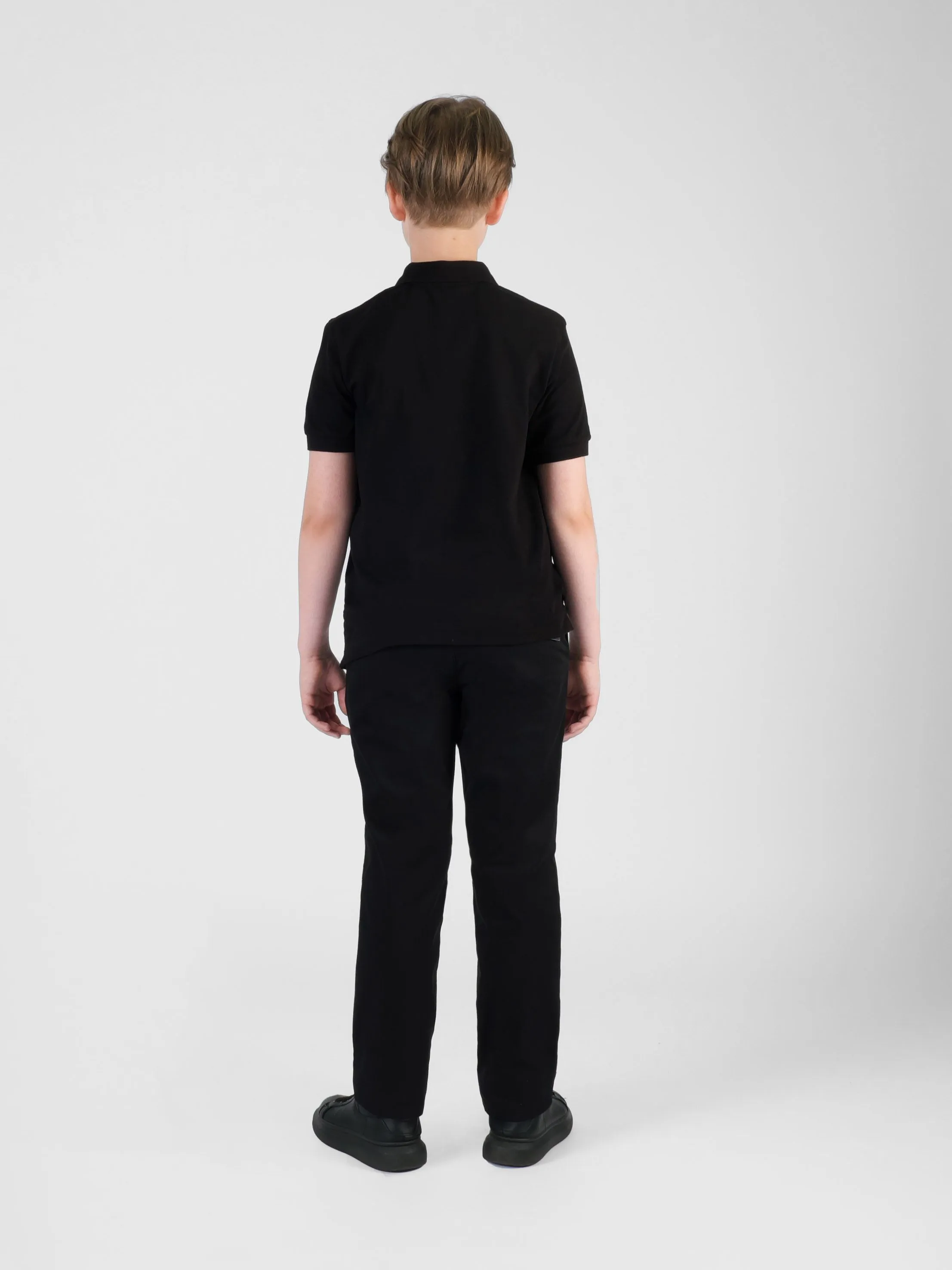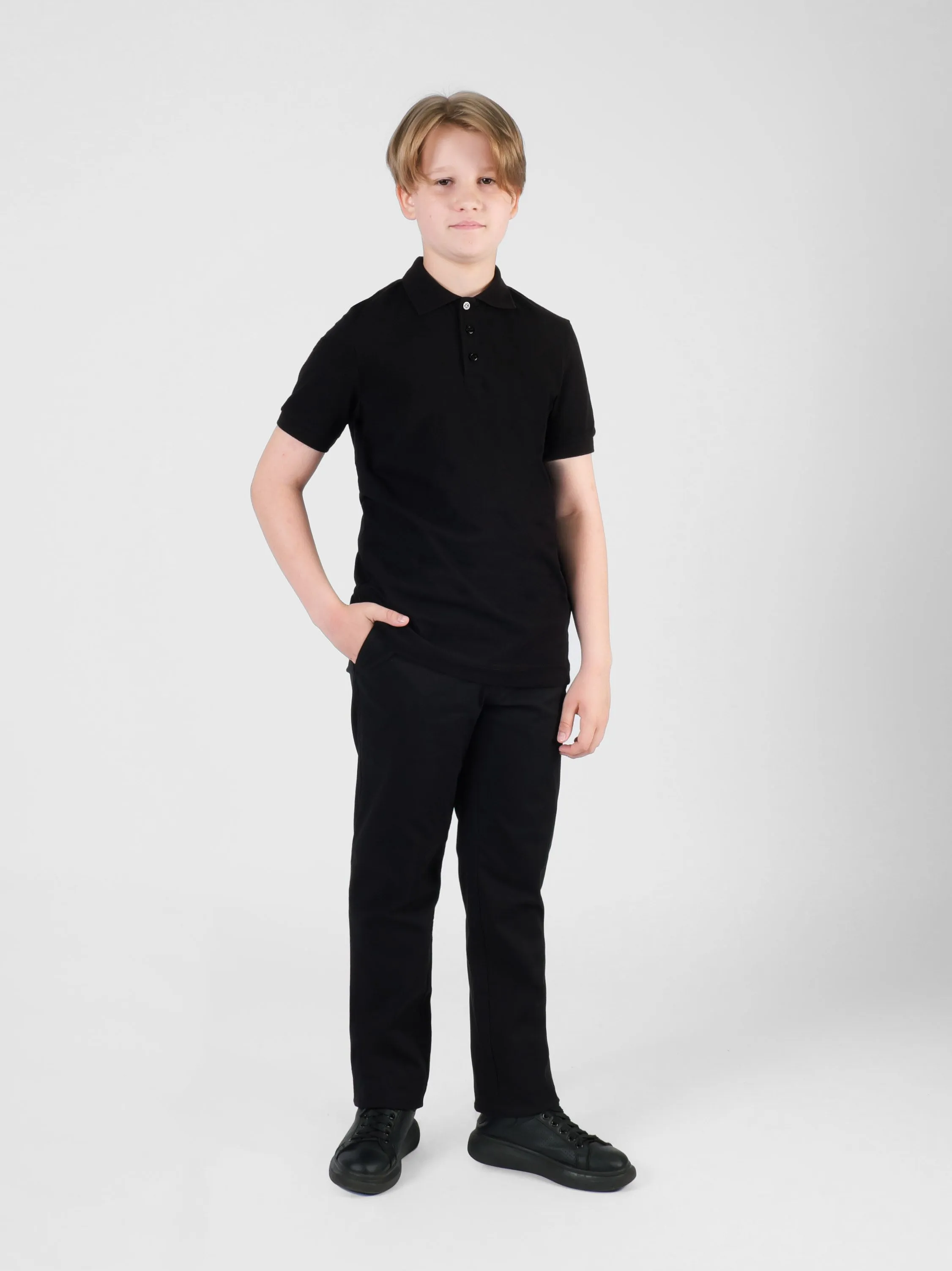 Черное поло – это универсальная вещь, которая будет уместна как на ежедневных занятиях в школе, так и на воскресной прогулке в парке. Минималистичный дизайн с классической рубашечной застежкой на пуговицах делает его стильным и элегантным одновременно. Пусть ваш мальчик всегда выглядит опрятно и модно в этом черном поло, которое сочетает в себе удобство, качество и непревзойденный стиль.