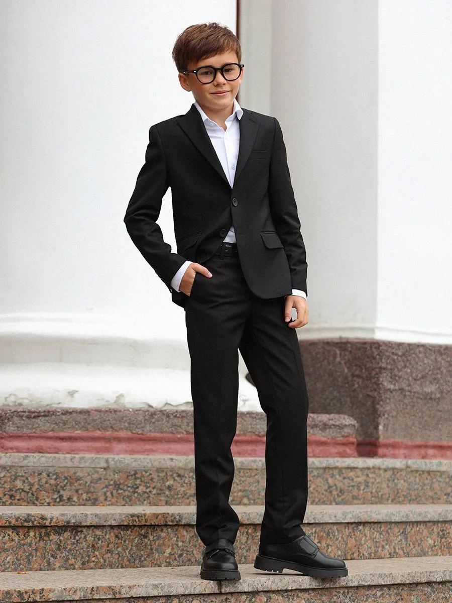Этот изысканный костюм - превосходное решение как для торжественных мероприятий, так и для формирования элегантного образа в будни. Классический черный оттенок – универсален, он гармонично комбинируется с разными сорочками, футболками и джемперами, давая возможность создавать многогранные и эффектные ансамбли на каждый день.