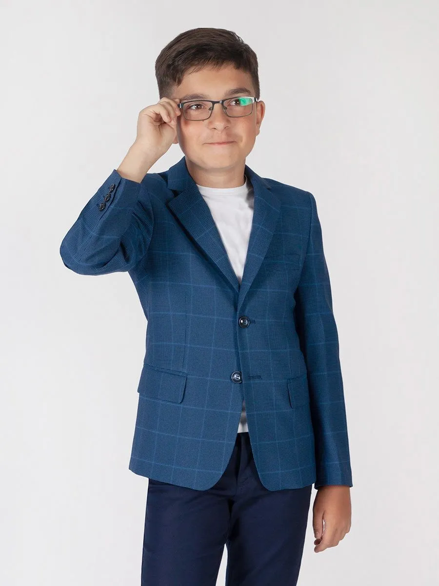 Пиджак в стиле Casual для мальчика — практичный и удобный предмет гардероба. Модель пиджака выполнена в приталенном силуэте, который подчеркивает фигуру и создает впечатление модного и стильного ребенка. Благодаря традиционному узору "ломаная клетка" в современном сине-черном исполнении, такой пиджак подходит для всех праздничных мероприятий, а также для повседневной жизни. Состав изделия включает в себя 73% полиэстера, 26% вискозы и 1% спандекса. Прочный, мягкий и эластичный материал будет создавать уверенность в том, что пиджак прослужит длительный срок, сохраняя при этом свои первоначальные формы и качества.