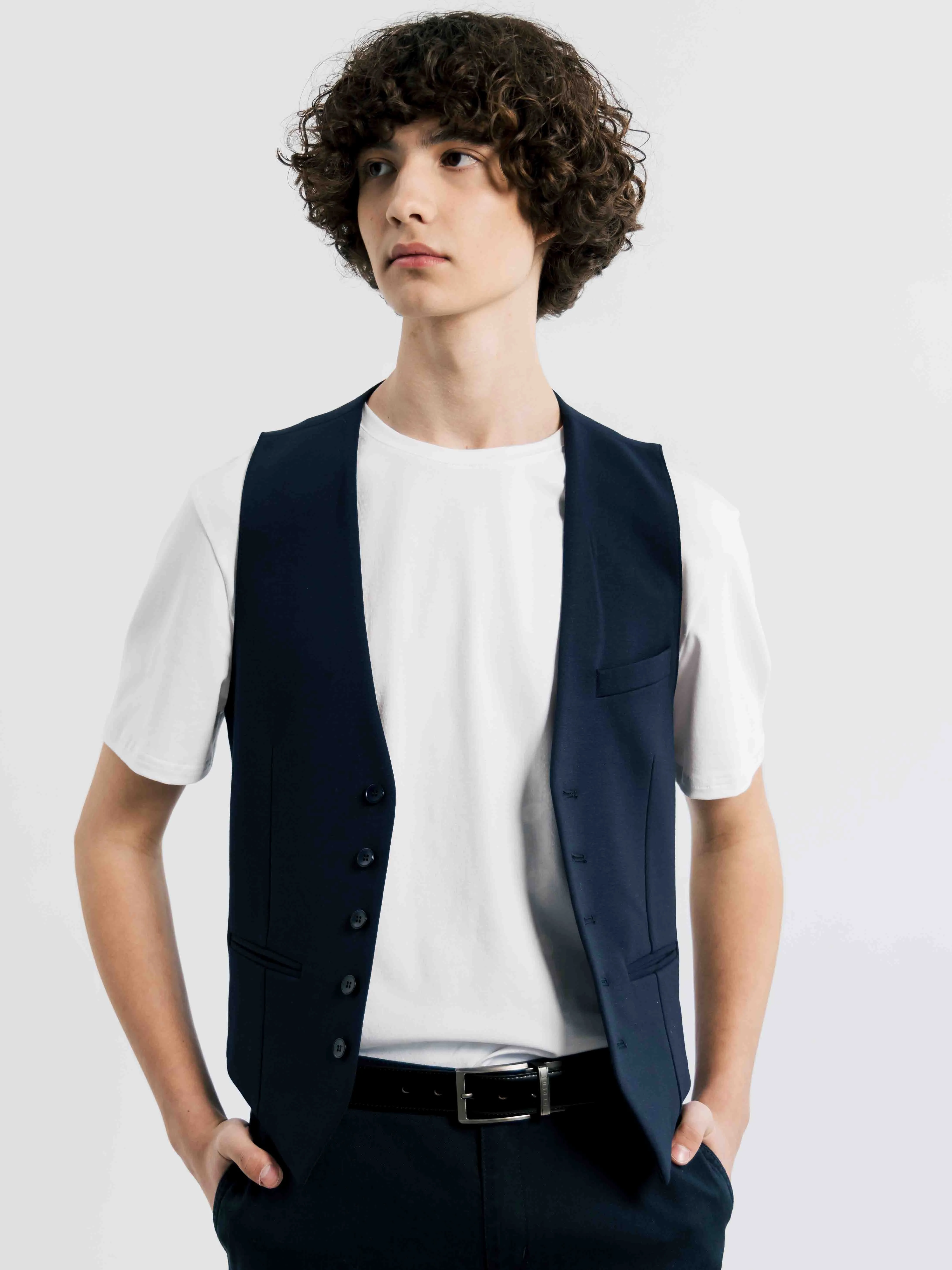 Жилет подростковый классический, однотонный, синий, создан для тех, кто ценит стиль и элегантность. Его великолепно продуманный крой идеально сидит на фигуре, обеспечивая комфорт и свободу движений. Синий цвет, будучи универсальным и модным, подходит для самых различных комбинаций одежды. Он хорошо сочетается с рубашками и футболками любых оттенков, создавая гармоничные и стильные образы. В школьных буднях, на торжественных мероприятиях или во время прогулок — этот жилет станет неотъемлемой частью гардероба, подчеркивая индивидуальность и хороший вкус своего обладателя.
